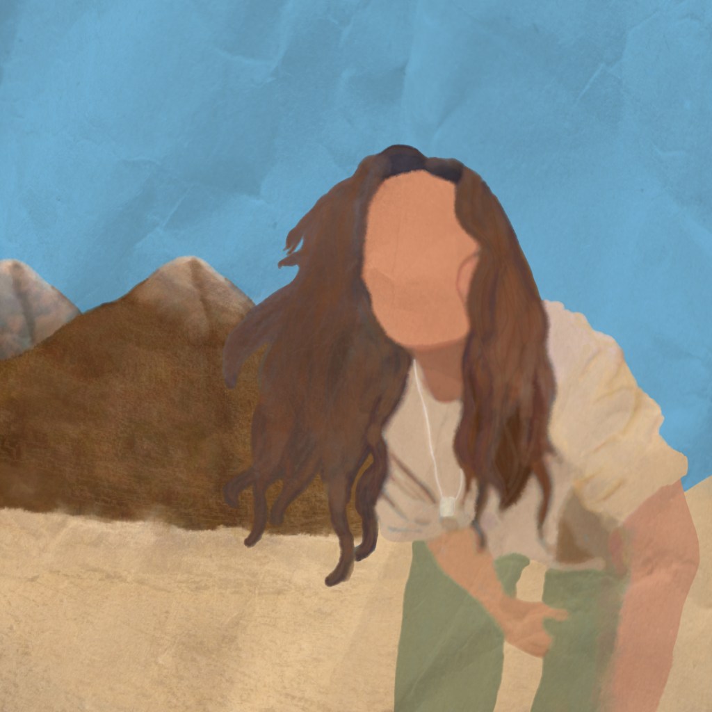 In the album cover, ANLIL crouches, donning a beige shirt, and captures a selfie in front of a colossal pyramid. Her iconic ring necklace graces her neck, and an enchanting fish-eye effect adds an otherworldly dimension to the image. The color palette is a symphony of blues, representing the vast sky, browns mirroring the ancient pyramid, and deep greens, echoing ANLIL‘s attire.